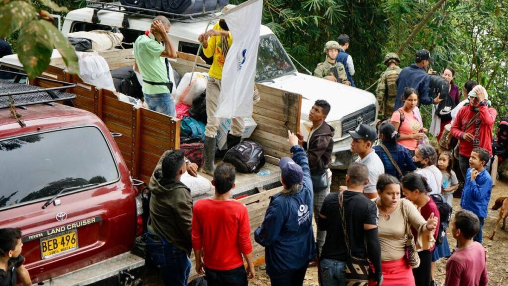 Hay que recordar que durante el año 2023, según datos de la Defensoría del Pueblo, cerca de 121.000 personas fueron víctimas de desplazamiento forzado masivo y confinamiento.